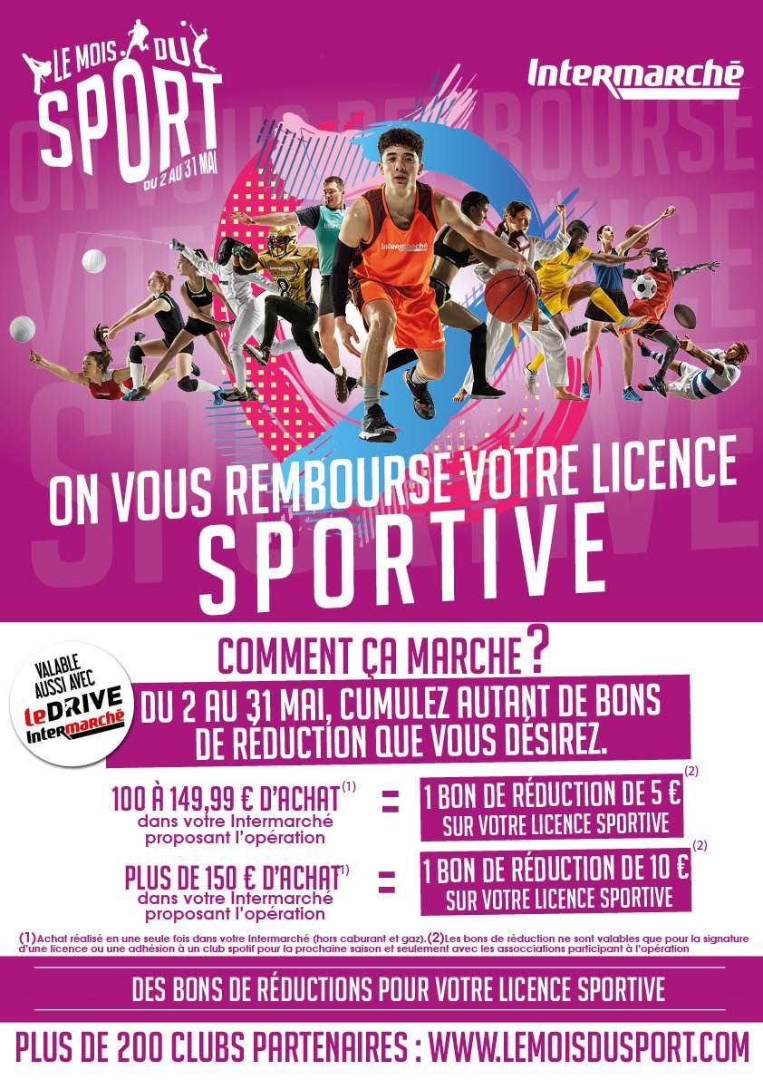 Pendant 𝐓𝐎𝐔𝐓 le 𝐌𝐨𝐢𝐬 𝐝𝐞 𝐌𝐀𝐈, recevez des bons à valoir sur vos licences sportives dans les associations partenaires : 𝟓€ 𝐨𝐟𝐟𝐞𝐫𝐭𝐬 dès 100€ d’achat / 𝟏𝟎€ 𝐨𝐟𝐟𝐞𝐫𝐭𝐬 à partir de 150€ d’achat.